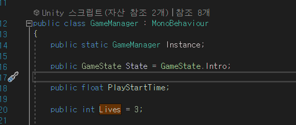 - GameManager에 Lives변수를 생성한다.